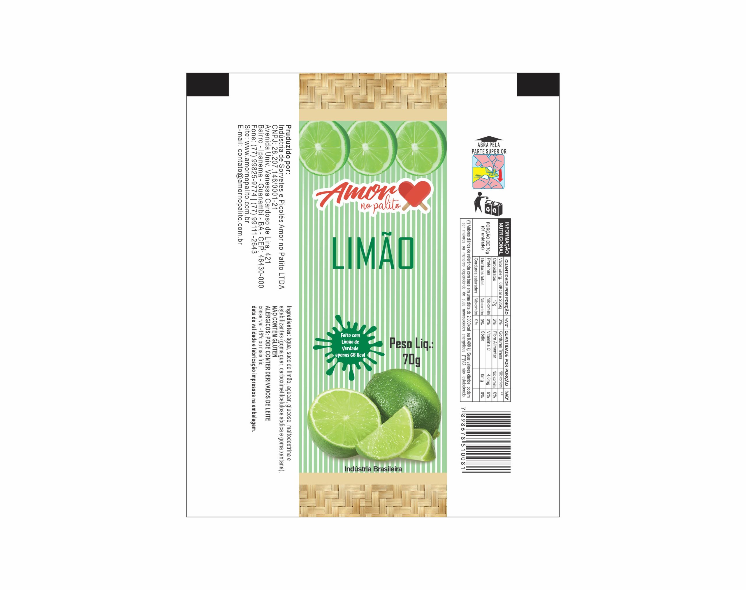 BOBINA BOPP LEITOSO PICOLE 6KG – AMOR NO PALITO LIMAO Ref: 15208