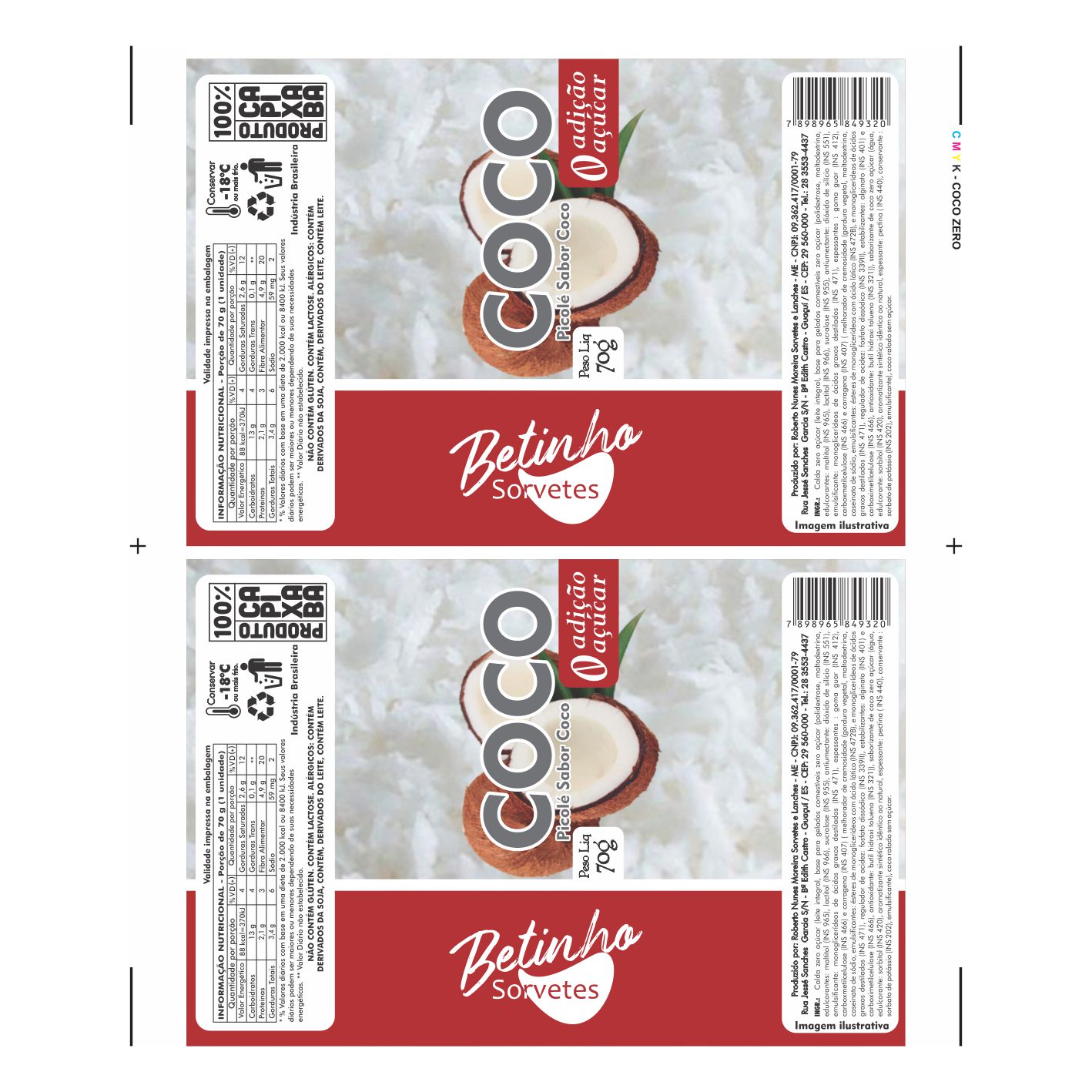 BOBINA BOPP LEITOSO PICOLE 6KG – BETINHO SORVETES COCO ZERO Ref: 17170
