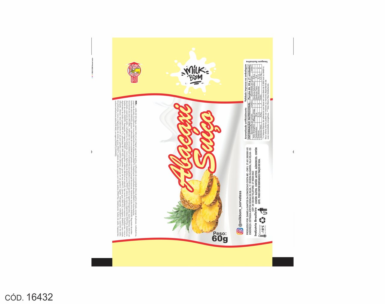 BOBINA BOPP LEITOSO PICOLE 6KG MILKBOM BARRAMARES ABACAXI SUIÇO Ref: 16432
