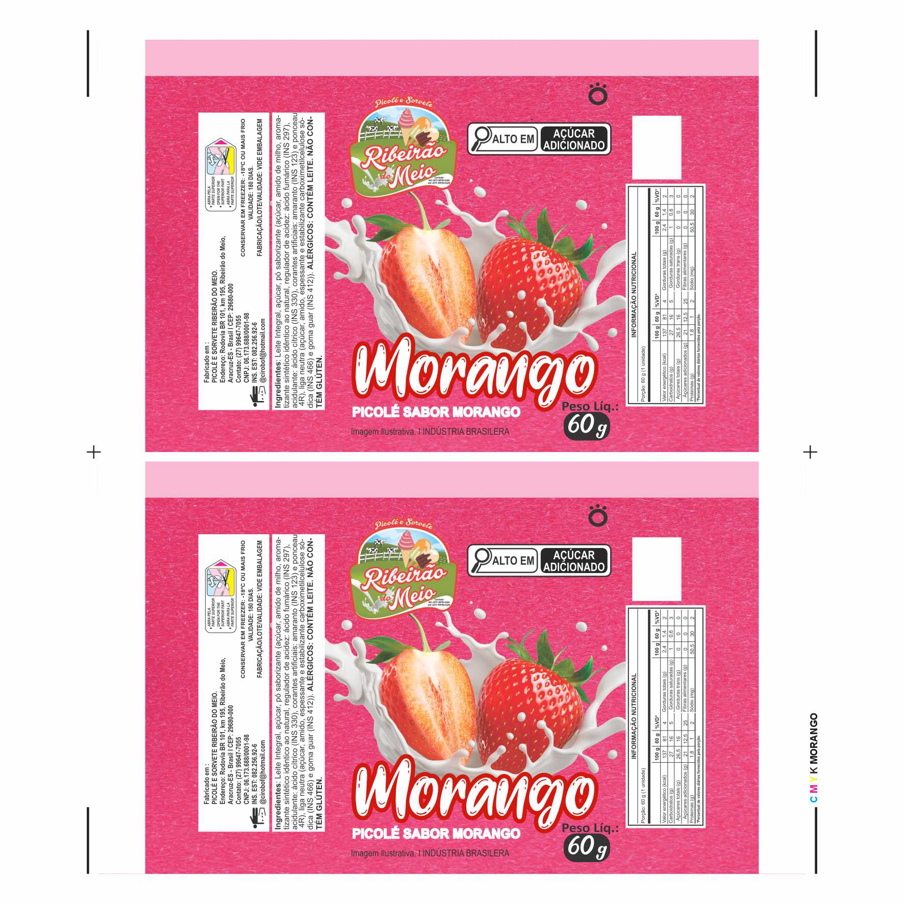 BOBINA BOPP LEITOSO PICOLE 6KG SÍTIO RIBEIRÃO DO MEIO MORANGO Ref: 21421