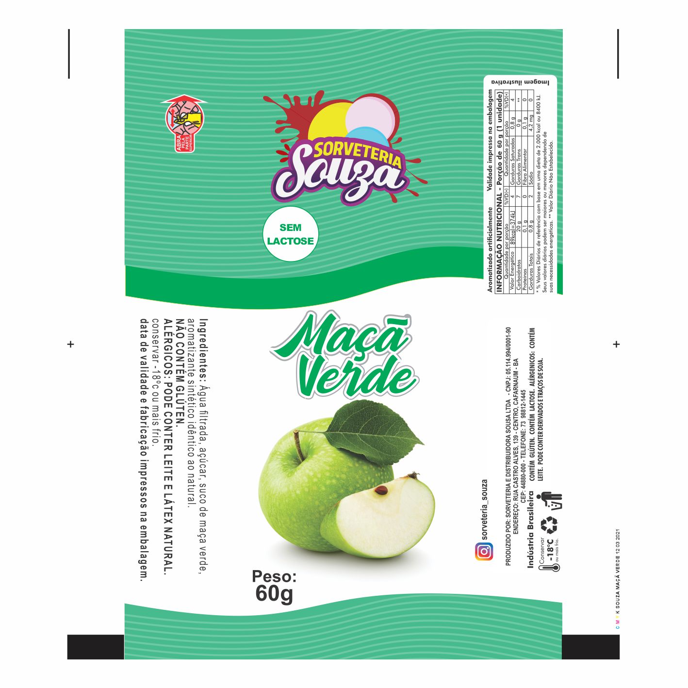 BOBINA BOPP LEITOSO PICOLE 6KG SORVETERIA SOUZA MACA VERDE Ref: 16675