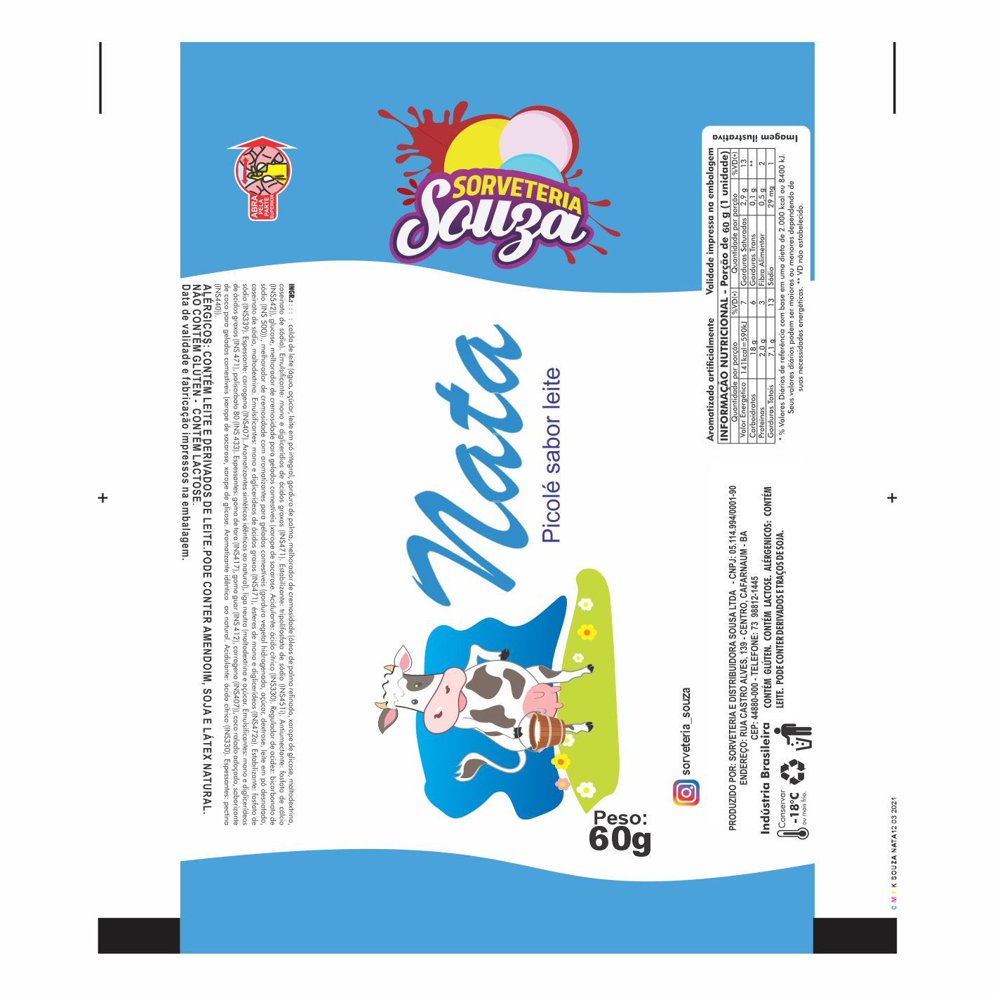 BOBINA BOPP LEITOSO PICOLE 6KG SORVETERIA SOUZA NATA Ref: 16676