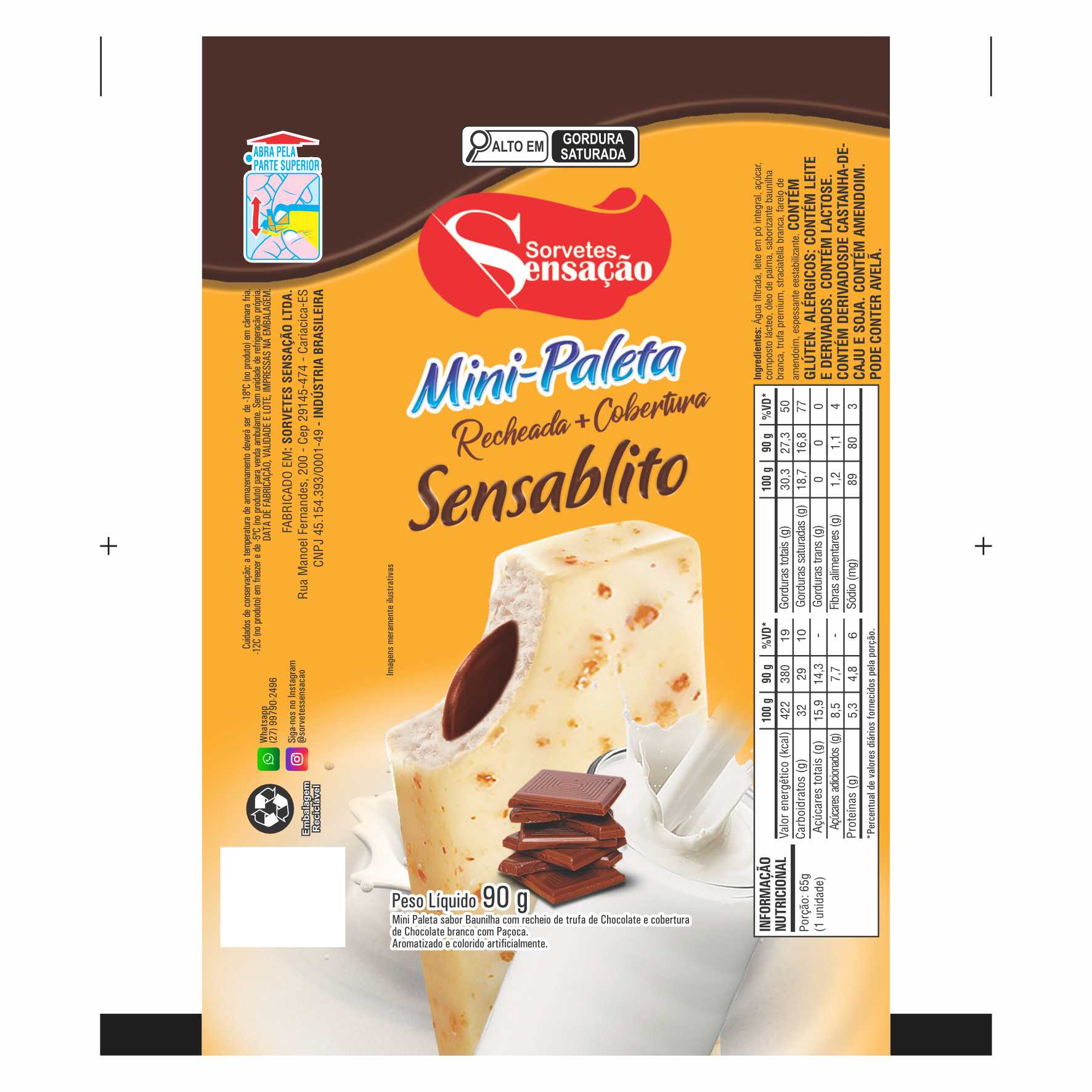 BOBINA BOPP LEITOSO PICOLÉ 6KG SORVETES SENSAÇÃO MINI PALETA SENSABLITO Ref: 20941