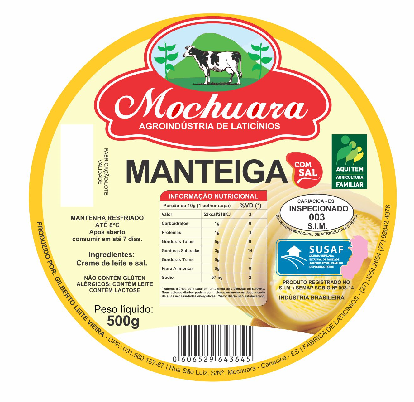 ETIQUETA 100MM DE DIAMETRO BOPP DURALYTE/MOCHUARA MANTEIGA 500G (500UNID)K Ref: 15870