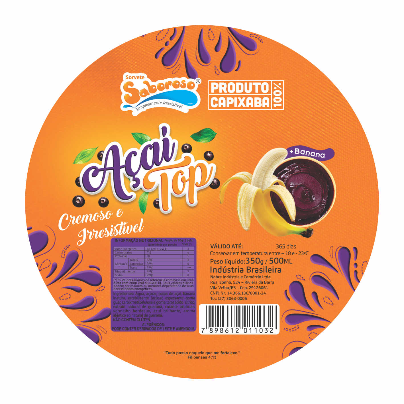 ETIQUETA 100MM DE DIAMETRO BOPP DURALYTE SABOROSO AÇAI COM BANANA (250UNID) K Ref: 16909
