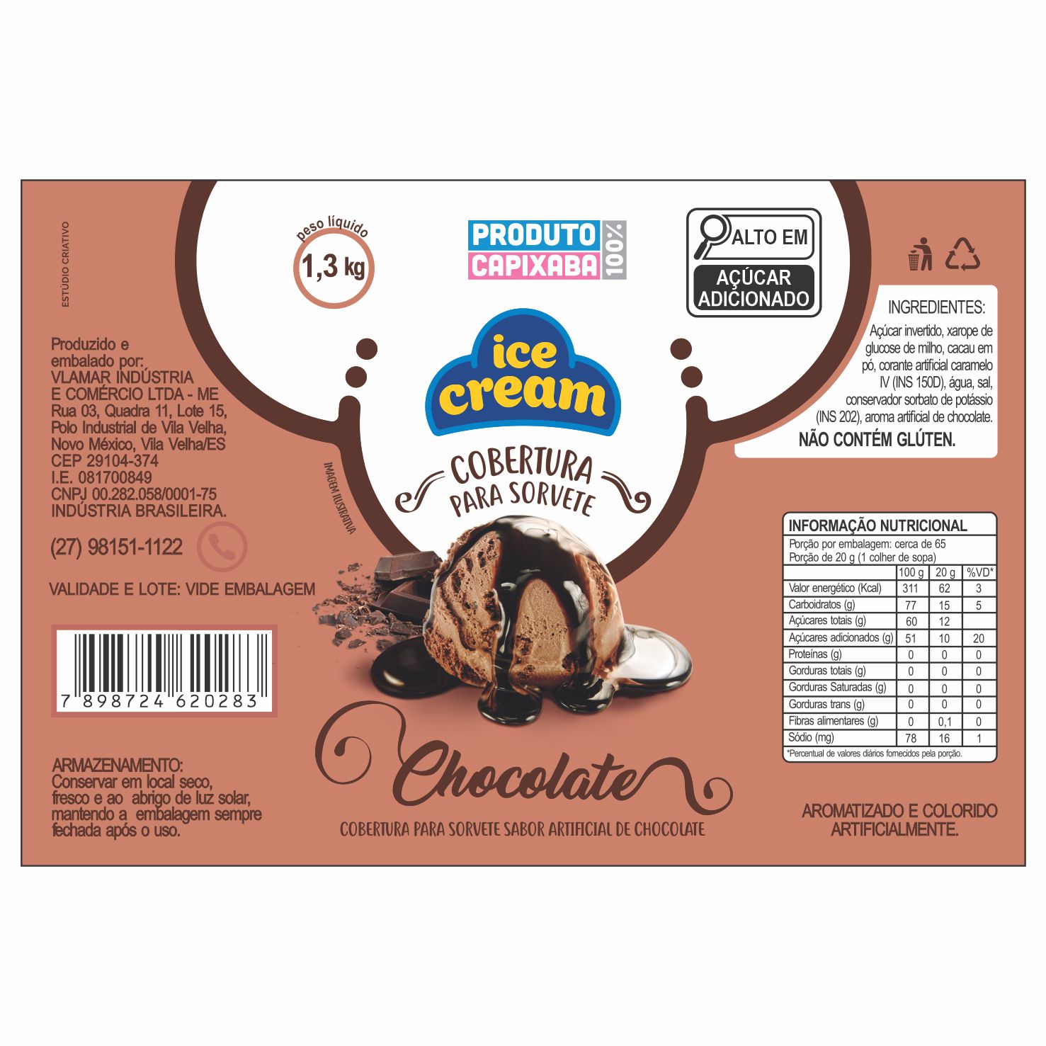 ETIQUETA 100X150/1 COUCHE ADES ICE CREAM VLAMAR COBERTURA SORVETE CHOCOLATE 1,3KG – 153MTS Ref: 18760