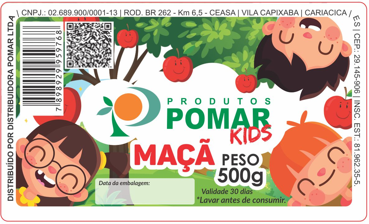 ETIQUETA 100X60/1 PERSONALIZADA/COUCHE ADESIVA/PRODUTOS POMAR KIDS MACA 500G-60MTS Ref: 15290
