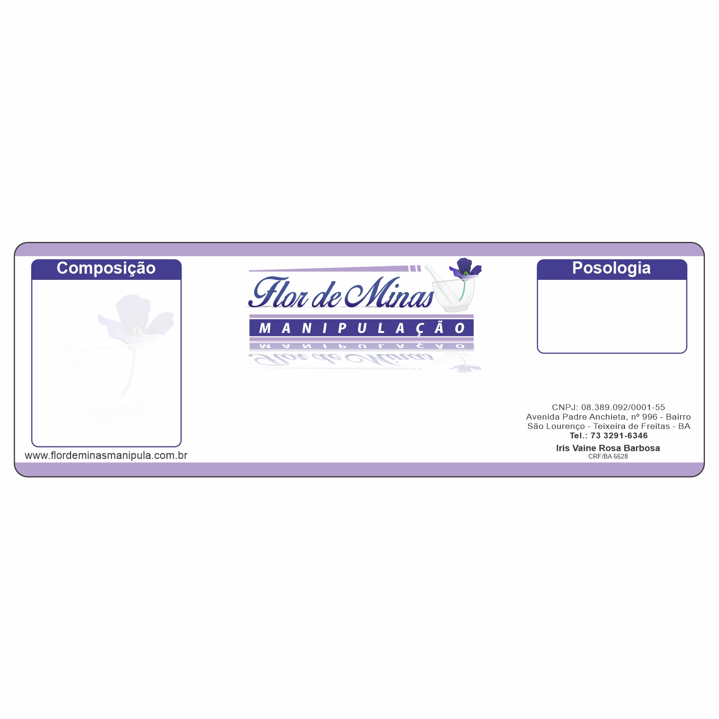 Quant.etiq. :1.000Largura :106mmAltura :36mm Colunas :01Tipo :RótulosPapel :Bopp PeroladoCola :A530Tubete :01 PolegadaMetragem :39mtsLargura Papel :110mmSerrilhada :SimPersonalização Frente:FLOR DE MINAS MANIPULAÇÃOCor do Pantone:CMYKOBS: RASPAR O SITE DO CLICHE PRETO