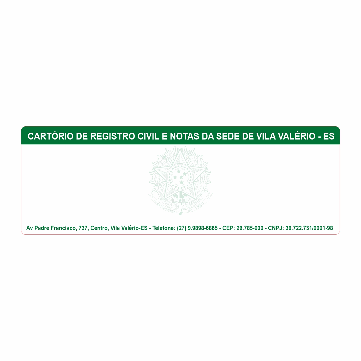 ETIQUETA 107X36/1 TERMOTRANS CARTORIO DE REGISTRO CIVIL E NOTAS DA SEDE DE VILA VALERIO 39MTS Ref: 16790
