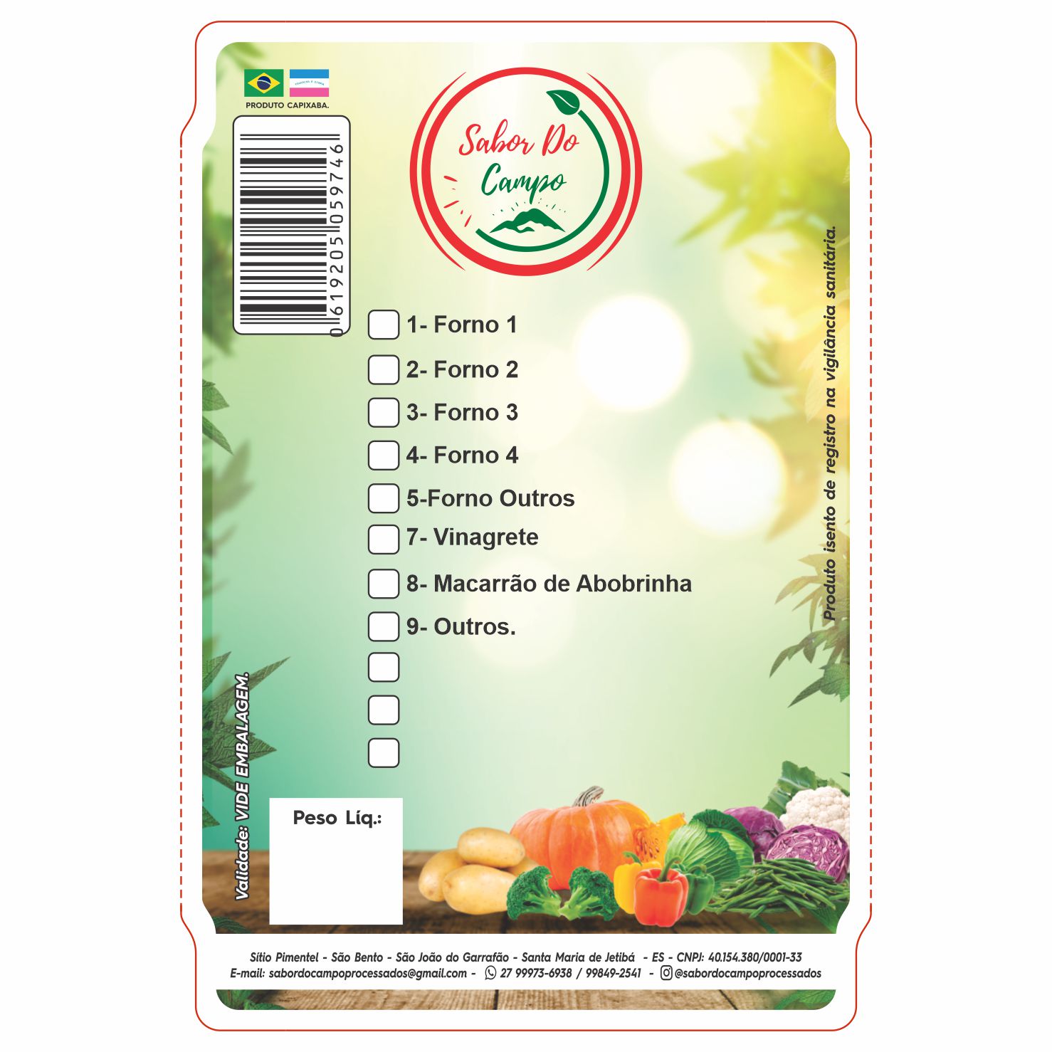 Quant.etiq. :427Largura :110mmAltura :75mmColunas :01Tipo :RótuloPapel :Polietileno Suprema PE FrigoríficoPersonalizada :SABOR DO CAMPO FORNOPantone :CMYK + k para encaixeSentido :1Tubete :01Metragem :32mts