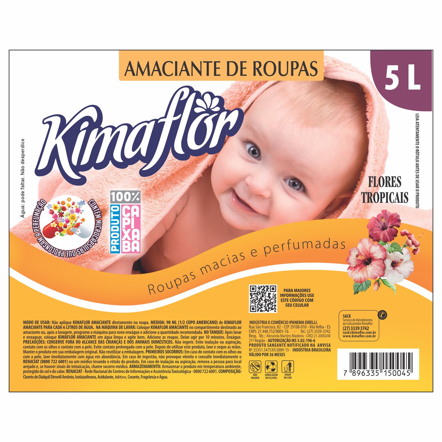 ETIQUETA 120X148/1 PERSON PEROLADO LAMINAÇÃO BRILHO KIMAFLOR AMACIANTE FLORES TROPICAIS 5L – 152,40MTS Ref: 18685