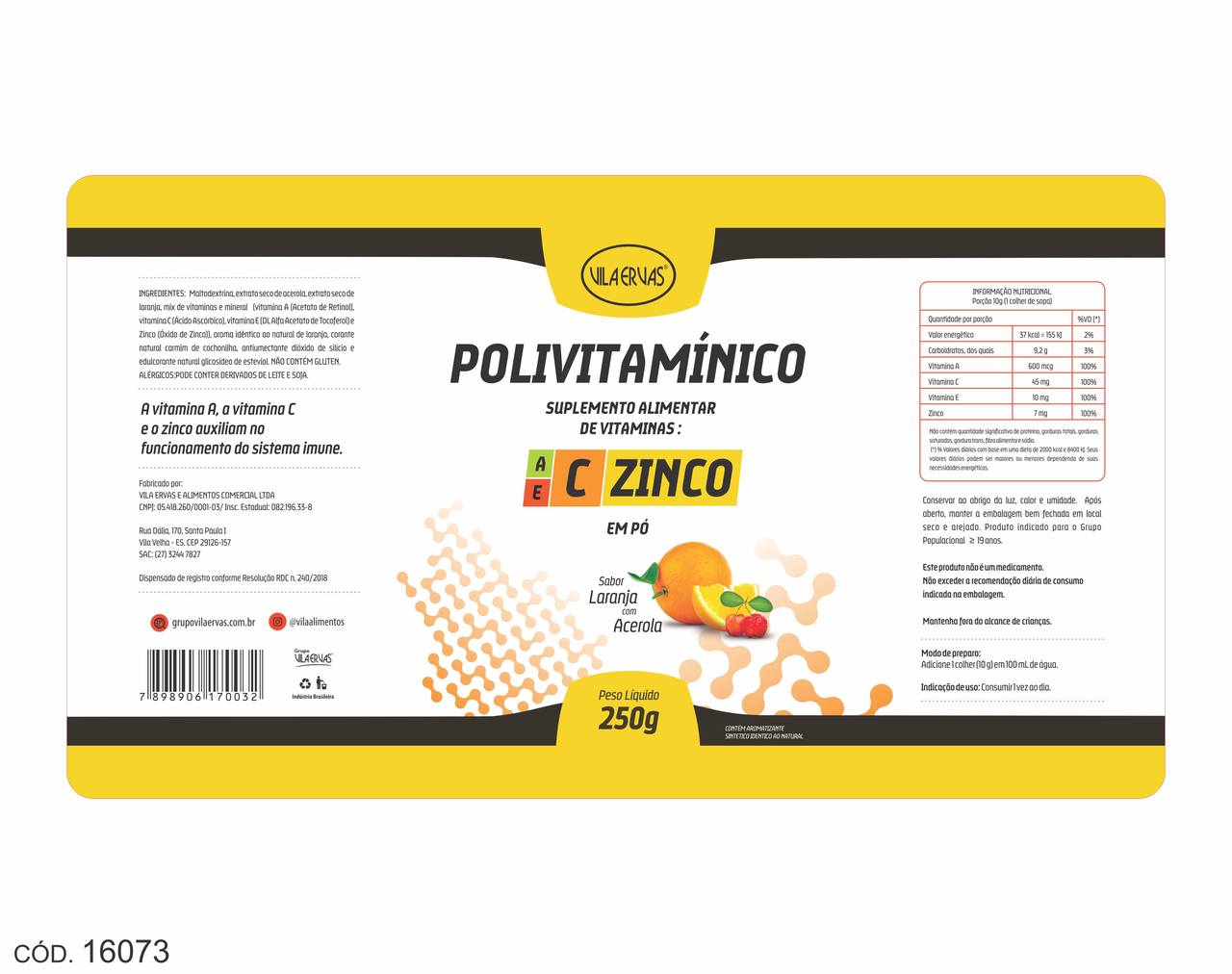 ETIQUETA 123X237/1 BOPP DURALYTE VILA ERVAS POLIVITAMINICO 250G (1000UNID)K Ref: 16073