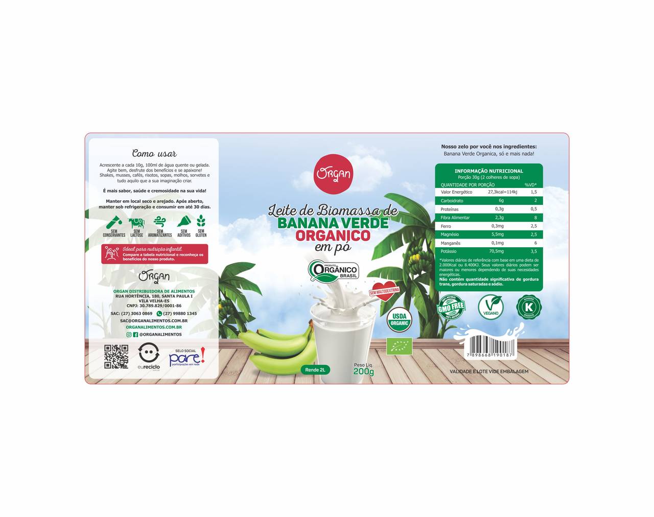 ETIQUETA 123X237/1 PERSONALIZADA/BOPP FOSCO/LEITE DE BIOMASSA DE BANANA VERDE ORGANICO PO ORGAN 200G (1000)K Ref: 15566