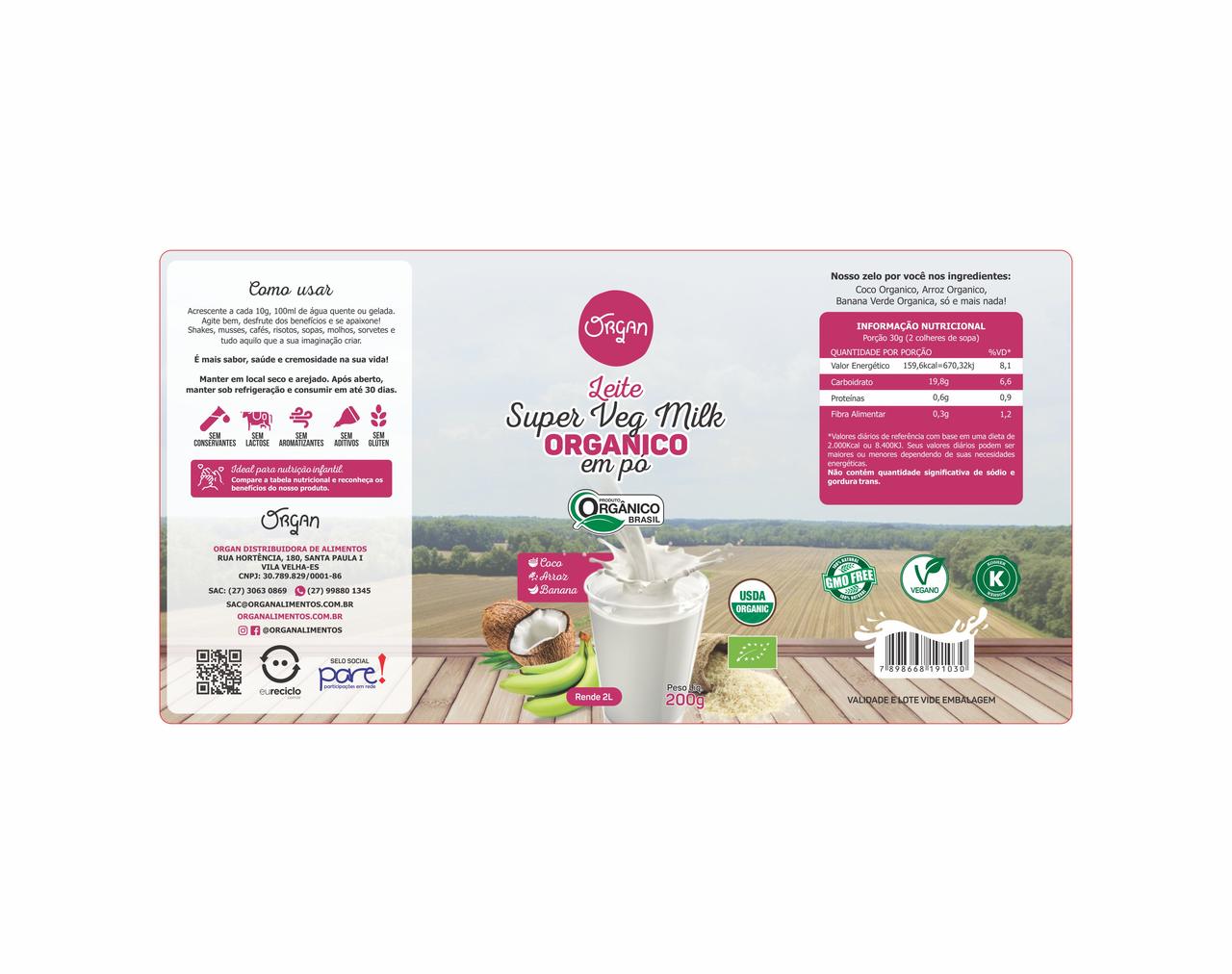 ETIQUETA 123X237/1 PERSONALIZADA/BOPP FOSCO/LEITE SUPER VEG MILK ORGANICO PO ORGAN 200G (1000)K Ref: 15571