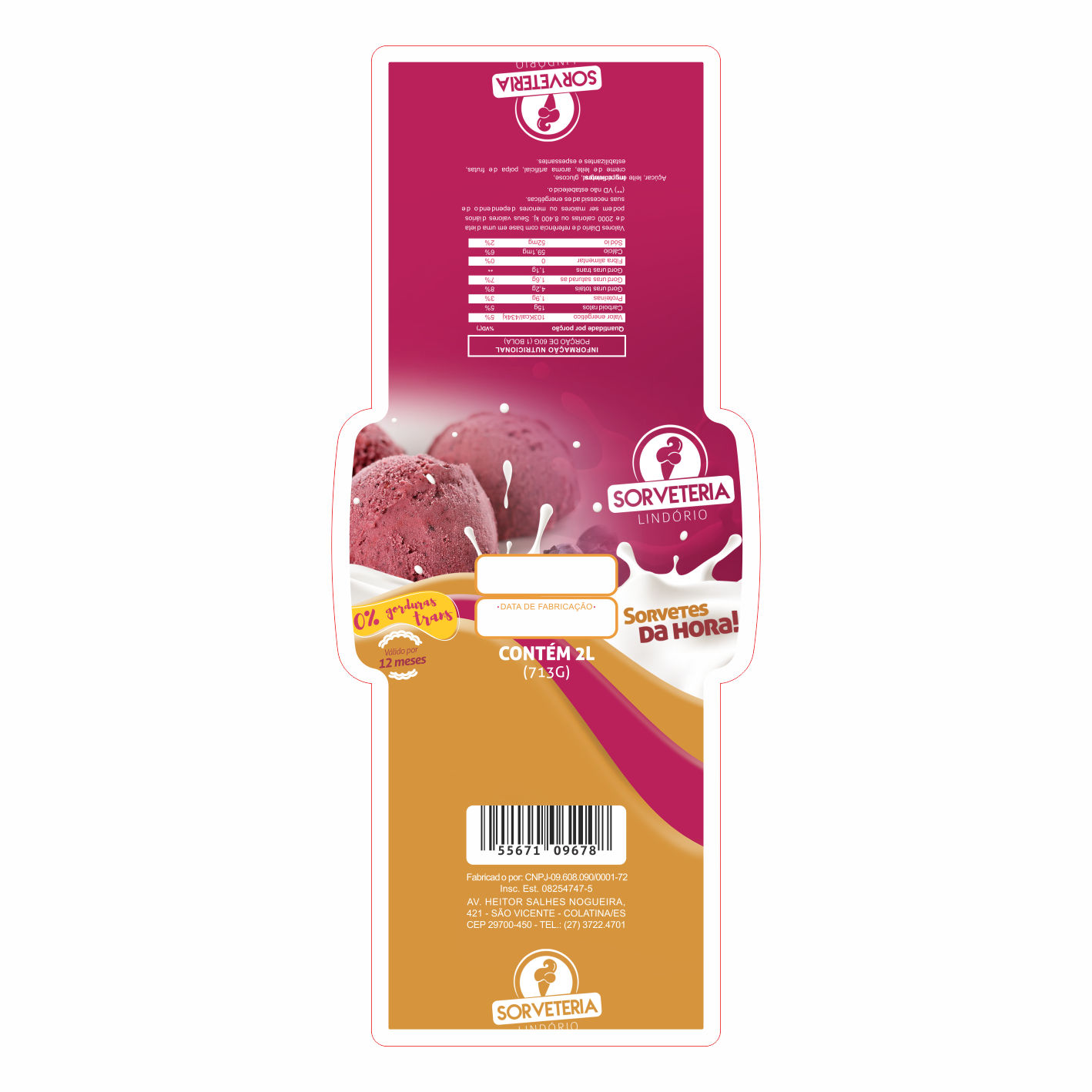 ETIQUETA 140X327/1 BOPP DURALYTE LINDORIO SORVETE NEUTRO (500UNID)K Ref: 15071