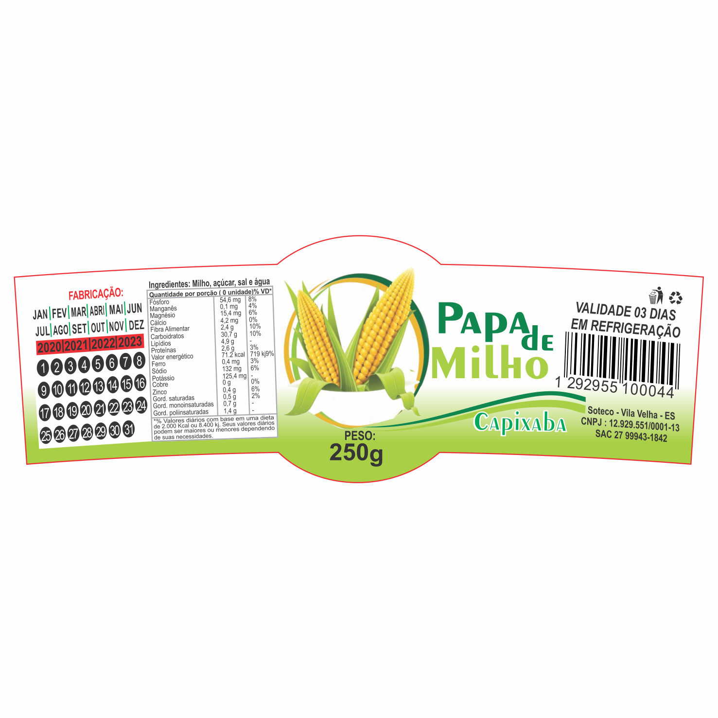 ETIQUETA 40×118/2 COUCHE ADESIVO PAPA DE MILHO CAPIXABA 250G (500UNID)K Ref: 16359
