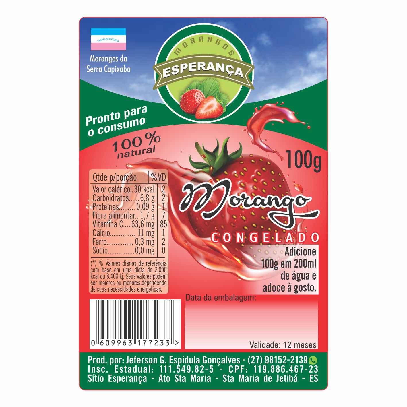ETIQUETA 40×60/2 BOPP DURALYTE ESPERANCA MORANGO CONGELADO 100G (2000UNID) K Ref: 16785