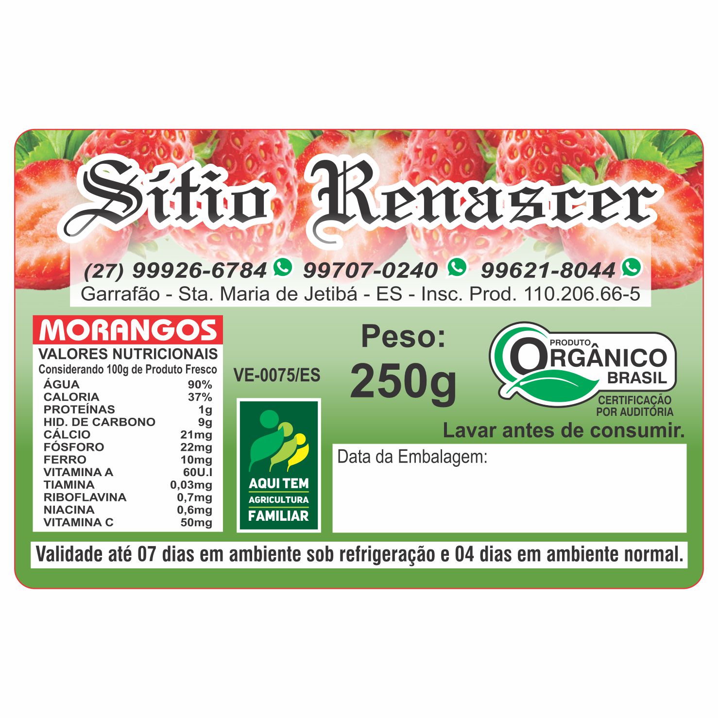 ETIQUETA 40X60/2 COUCHE ADESIVA SITIO RENASCER MORANGOS 250G 78,75MT Ref: 16580
