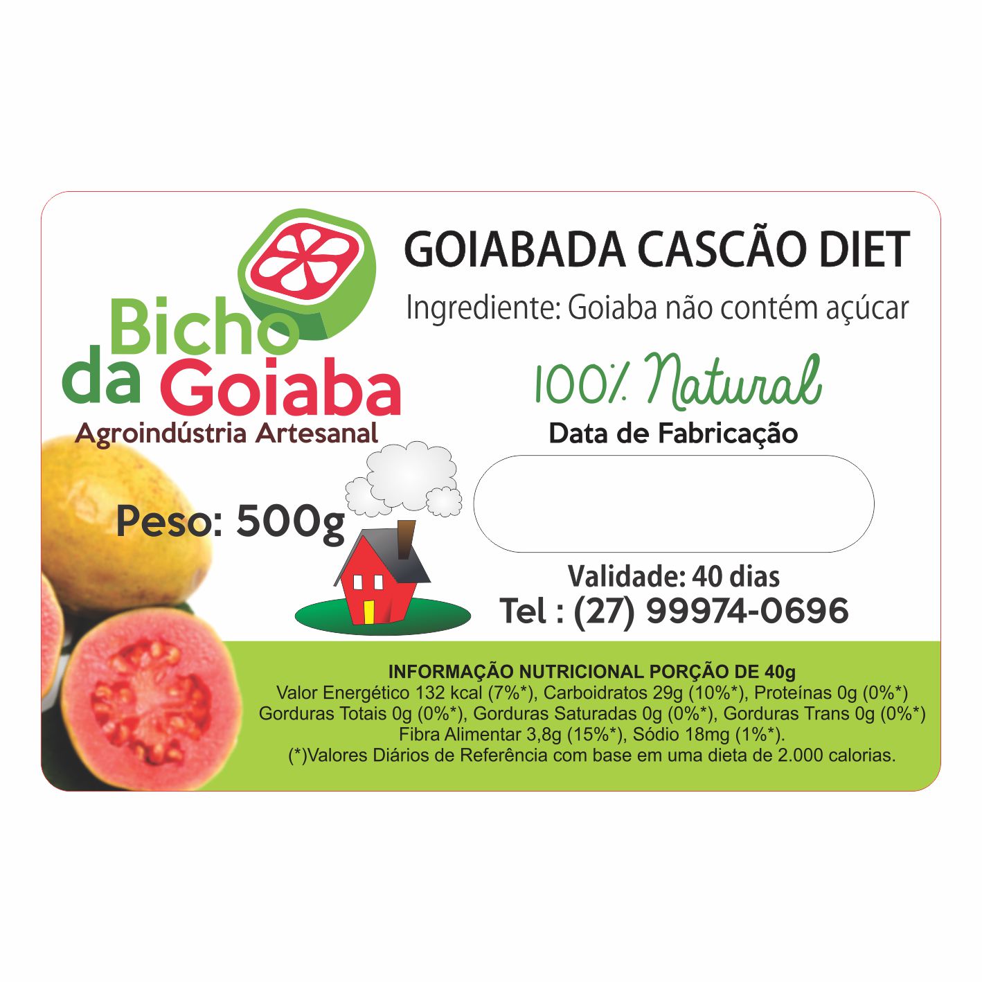 ETIQUETA 40X60/2 COUCHE ADESIVO BICHO DA GOIABA GOIABADA CASCAO DIET 500G (2500UND)K Ref: 16689