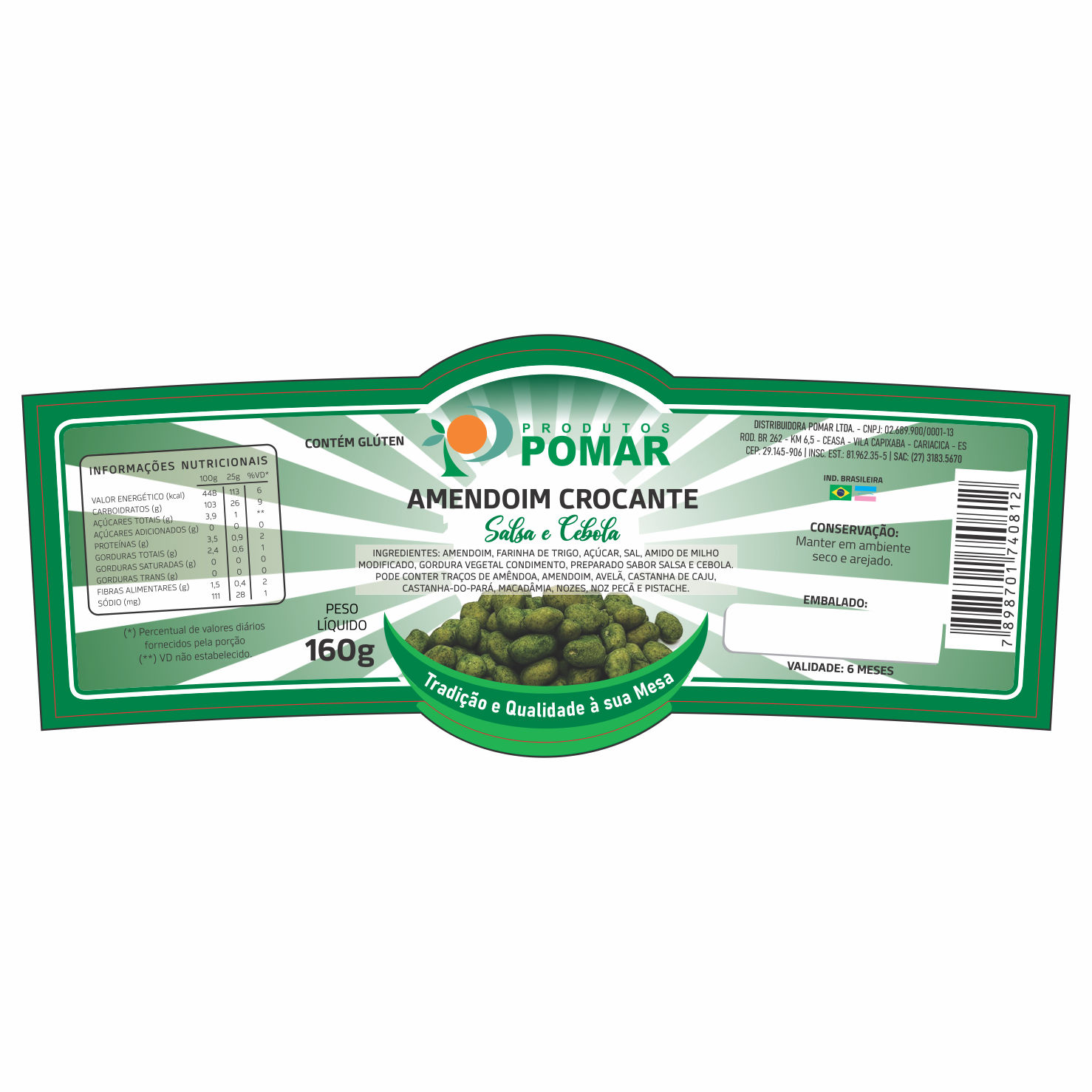 ETIQUETA 52X135/1 COUCHE ADESIVO POMAR AMENDOIM CROCANTE SALSA E CEBOLA 160G – 70,20MT Ref: 18172