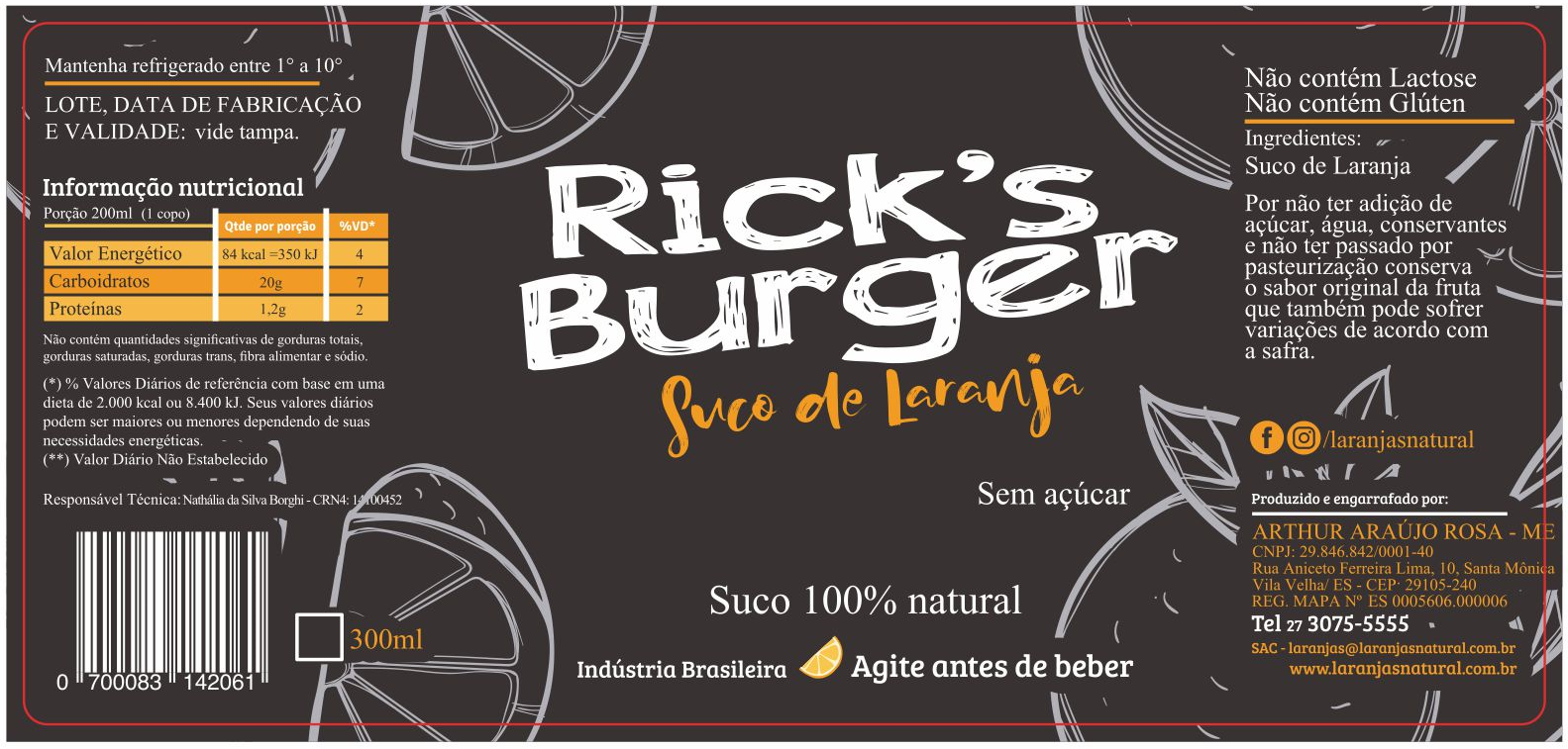 ETIQUETA 60X130/1 PERSONALIZADA/COUCHE ADESIVO LAMINADO/LARANJA NATURAL/RICKS BURGUER-80MTS Ref: 15867