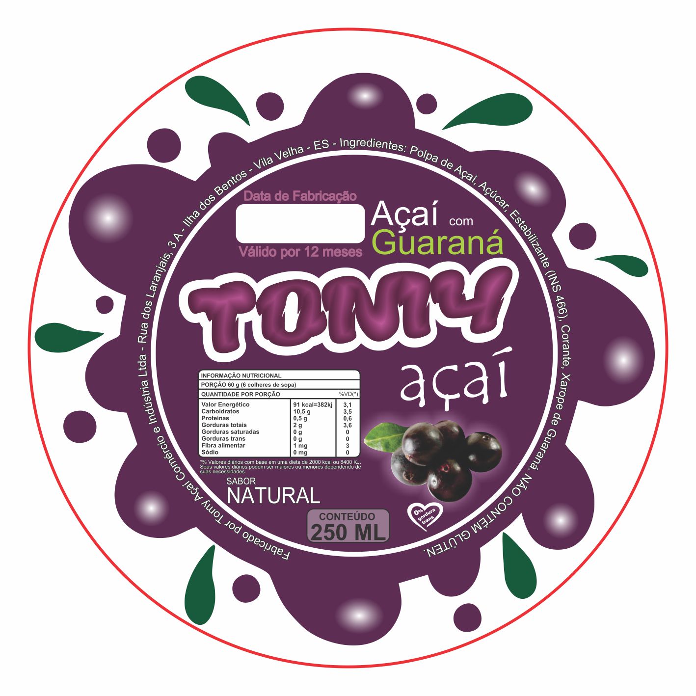 ETIQUETA 70MM DE DIAMETRO/BOPP DURALYTE/TOMY ACAI 250ML (500UNID)K Ref: 15891