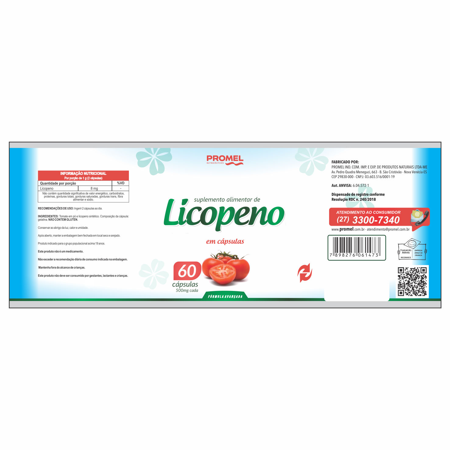 ETIQUETA 70X187 PERSON BOPP METALIZADO LAMINADO FOSCO LICOPENO 60CAP PROMEL (1.000UNI)K Ref: 17688
