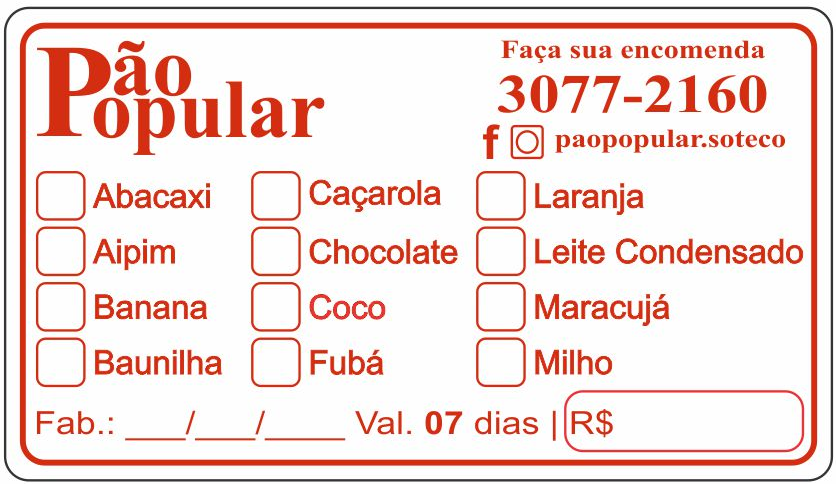 ETIQUETA 70X40/1 PERSONALIZADA/COUCHE ADES/PAO POPULAR BOLO-32MTS Ref: 14991