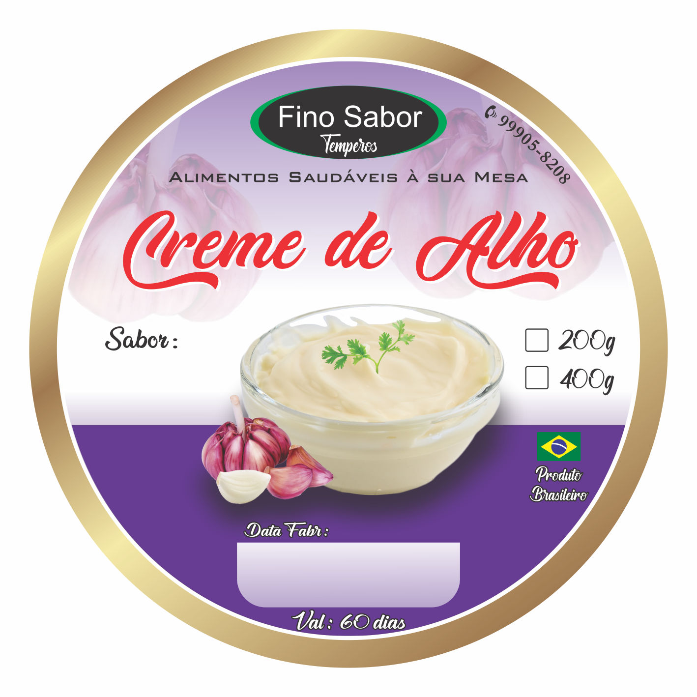ETIQUETA 80MM DE DIAMETRO COUCHE ADESIVO FINO SABOR CREME DE ALHO (500UNID)K Ref: 17137