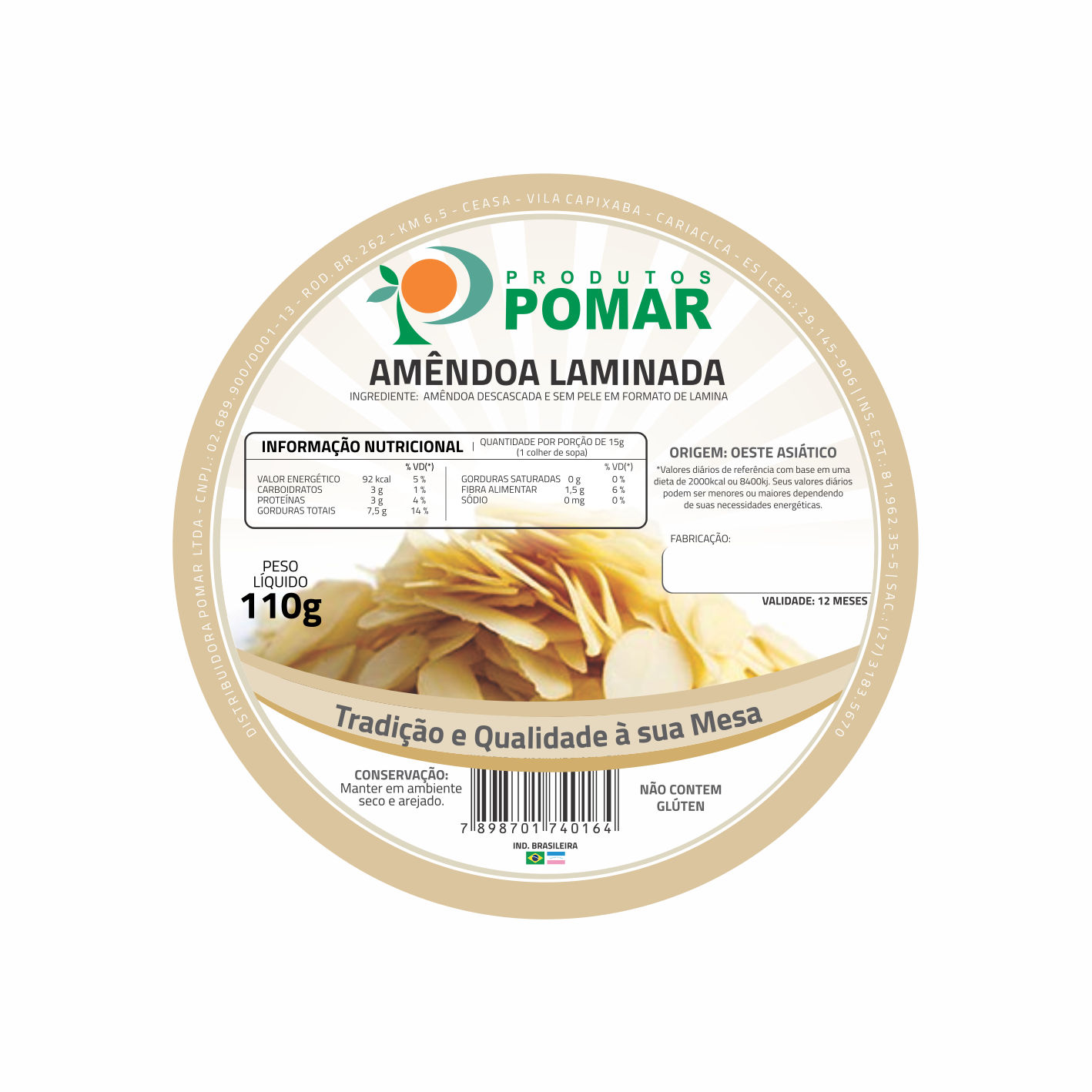 ETIQUETA 80MM DE DIAMETRO COUCHE POMAR AMENDOA LAMINADA 110G (500UNID)K Ref: 16729