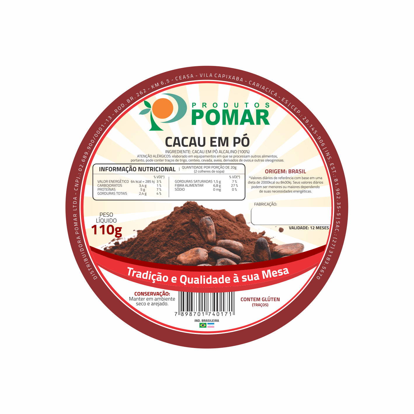 ETIQUETA 80MM DE DIAMETRO COUCHE POMAR CACAU EM PO 110G (500UNID)K Ref: 16732