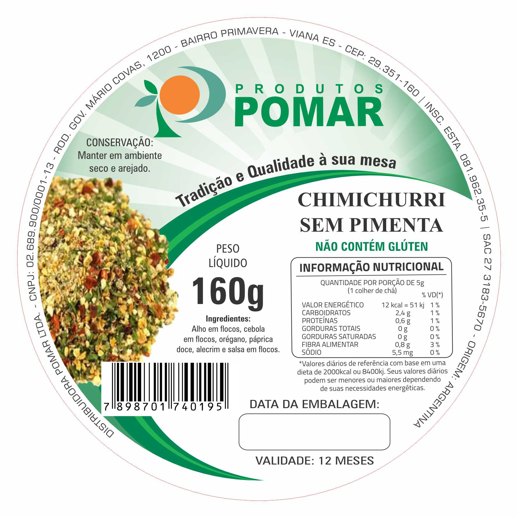 ETIQUETA 80MM DE DIAMETRO COUCHE POMAR CHIMICHURRI SEM PIMENTA 160G 42MTS Ref: 22082