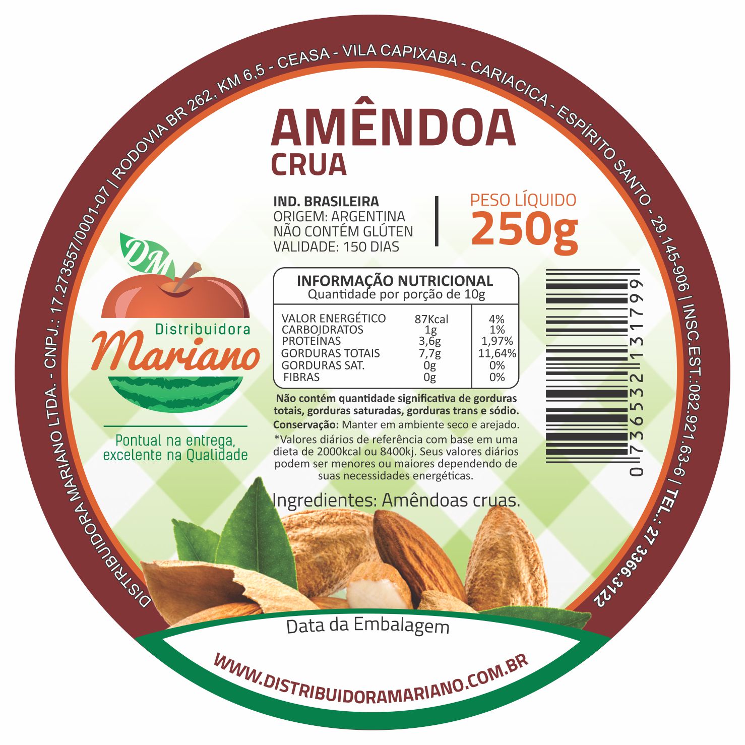ETIQUETA 80MM DE DIAMETRO PERSONALIZADA/COUCHE ADES/DISTRIBUIDORA MARIANO/AMENDOA CRUA 250G-42MTS Ref: 15588