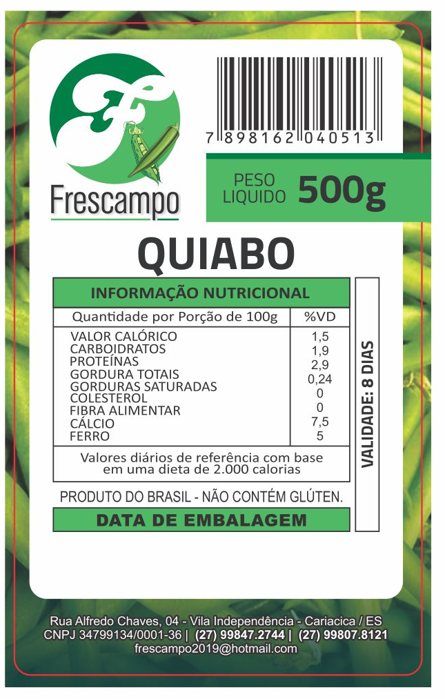 ETIQUETA 80X50/1 PERSONALIZADA/COUCHE ADESIVA/FRESCAMPO QUIABO 500G-53MTS Ref: 15672