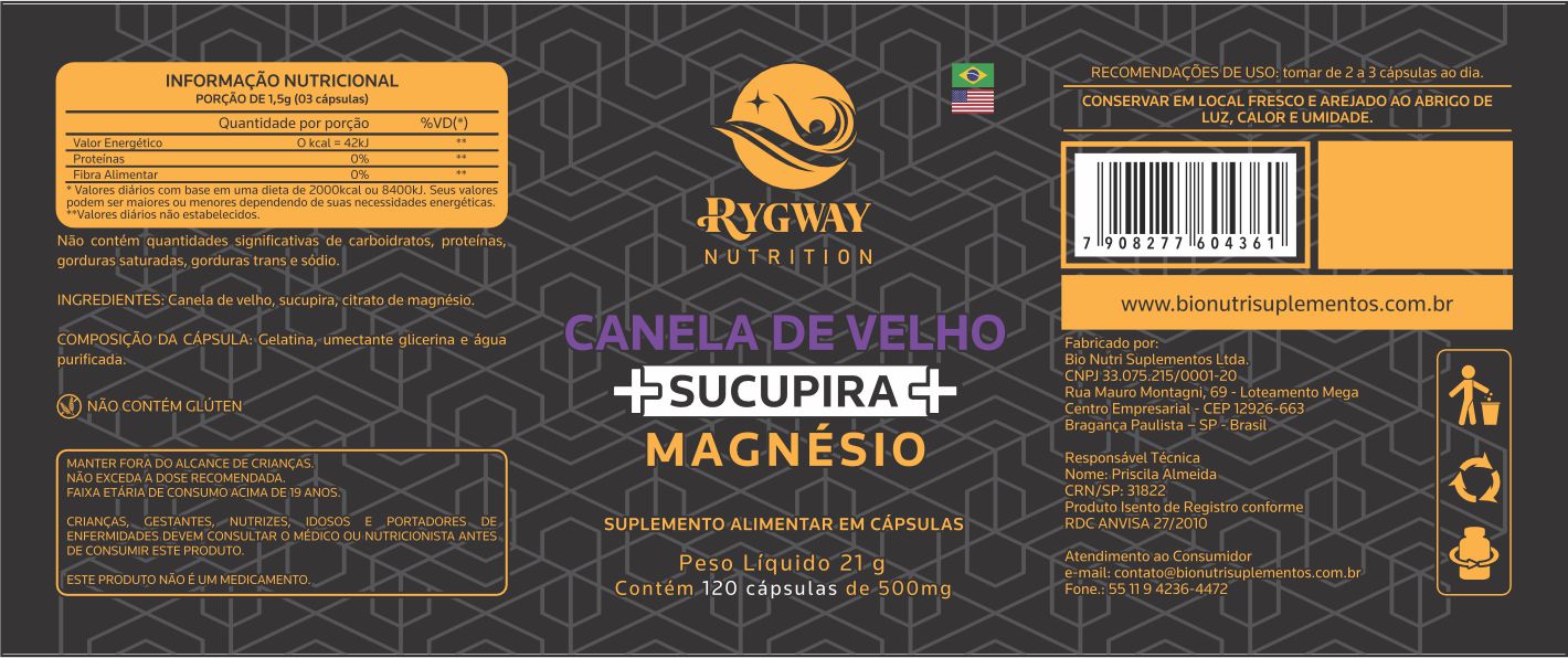 ETIQUETA 85X210 PERSON BOPP METALIZADO BIONUTRI RIGWAY CANELA DE VELHO + SUCUPIRA + MAGNESIO 120CAPS (500UNI)K Ref: 19350