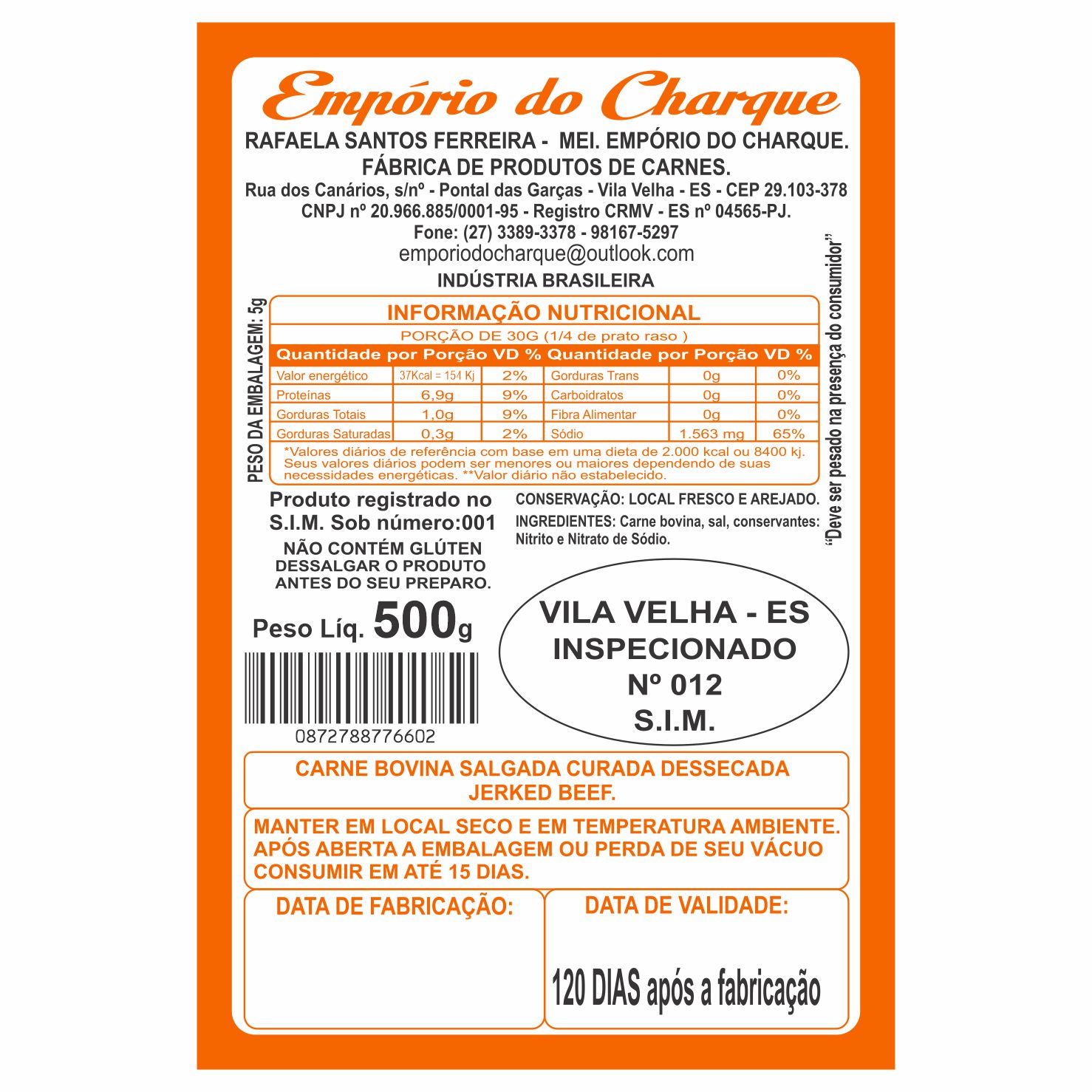 ETIQUETA 90X60/1 PERSONALIZADA/COUCHE ADES/EMPORIO DO CHARQUE 500G-32MTS Ref: 15834