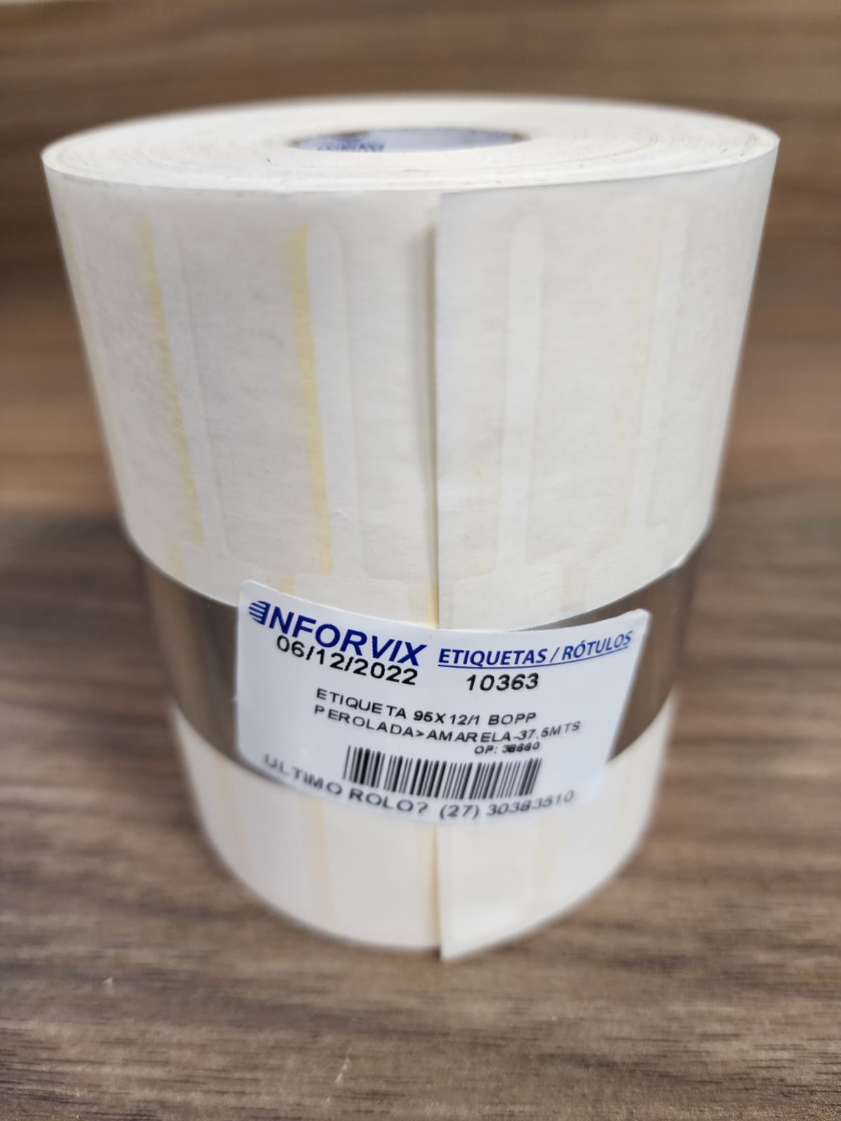 Quant. Etique.: 2.500Largura : 95 mmAltura : 12 mmColunas : 01 colunaMaterial : Bopp peroladoCOLA : A 520 (jóia)Cor : AmarelaPantone : 114 CTubete : 01 polegadaMetragem : 37,5 metrosPRINCIPAIS IMPRESSORAS QUE UTILIZAM (32mt):– ARGOX: OS214 PLUS, OS2140– INTERMEC/HONEYWELL: PC42T– ELGIN: L42, L42PRO– ZEBRA: ZD220, GC420T, GK420T, TLP2844 ENTRE OUTRAS– GODEX: EZ320– DATAMAX: E-4204, E-4205, E-4206– OUTROS MODELOS (Consultar Manual de Sua Impressora)PEDIDO MÍNIMO : 10 ROLOSPara compra abaixo da quantidade mínima favor entrar em contato com Inforvix – 27-30383510
